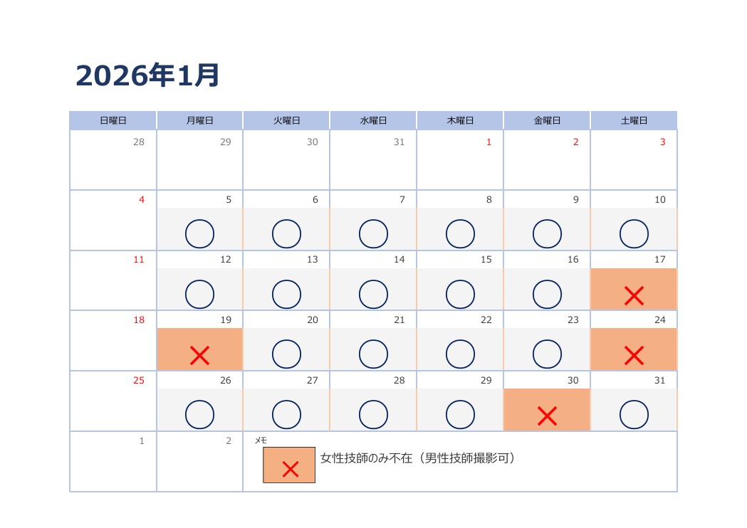 2025/12/26 2026年1月 マンモグラフィー撮影女性技師不在日について 2026年12月のマンモグラフィ撮影の女性技師不在日はこちらです↓↓ 蒼生病院の年末年始休診については、下記の通りです。↓↓