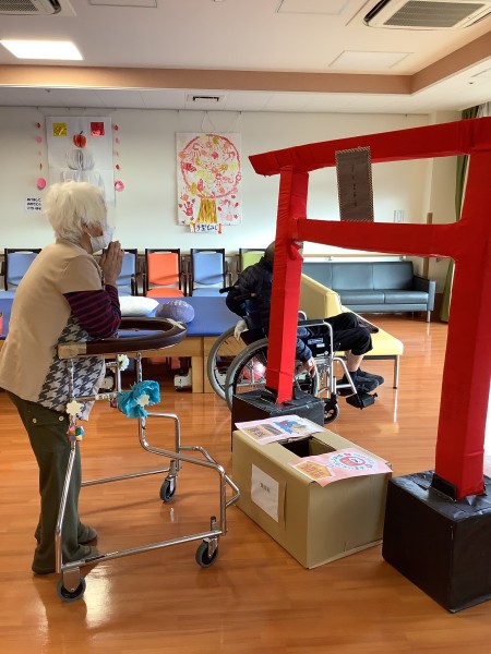蒼の里に代々受け継がれる鳥居が登場し、お賽銭箱を置くとあっという間に蒼神社が出来上がります。手作りのお賽銭を入れて参拝した後は、おみくじを引き「末吉ってなんや?」「大吉出たわ!!」と楽しんでいらっしゃいました。