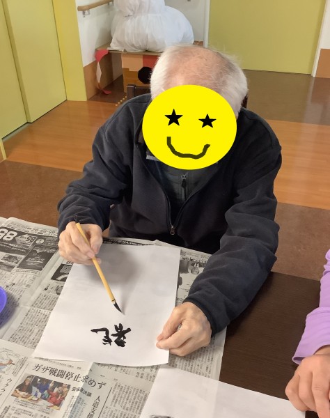 また、書き初めも行い、「久しぶりや」「なんて書こう?」「とりあえず、名前書いたらええんか?」と皆さん、思い思いの言葉を書かれ、様々な作品が出来上がりました。