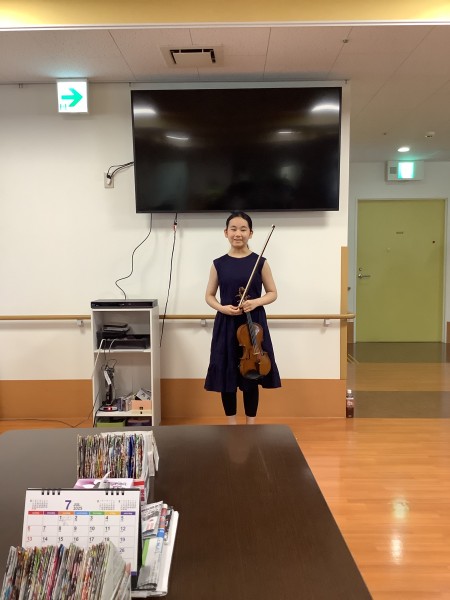 高橋 愛花様 (11歳)にご来訪くださり、ヴァイオリン3曲演奏してくれました。