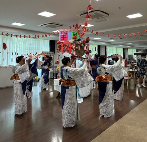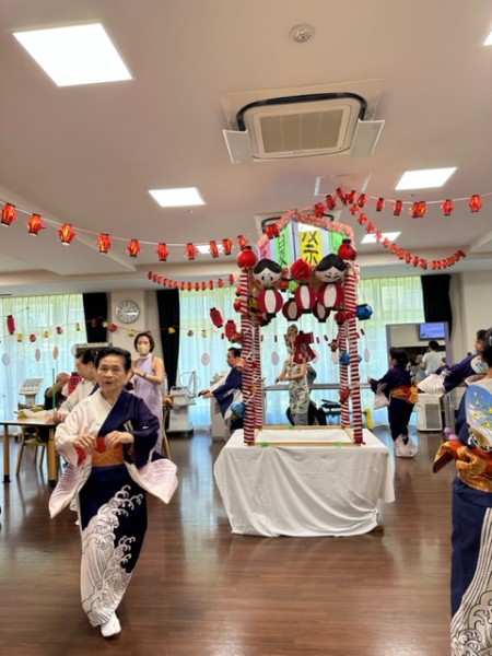久しぶりの盆踊りでご利用者様も目をキラキラさせて手振りで盆踊りを