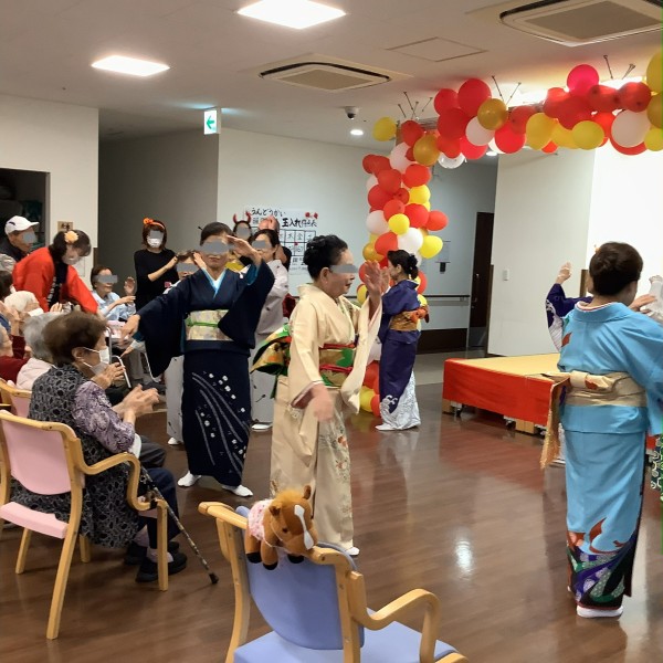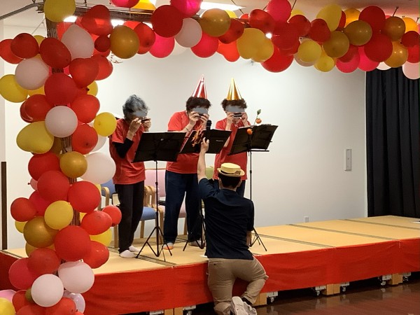 10/26(日)に秋祭りを13時と15時の2部構成で実施しました。例年通り、1部はほぼ満員状態で、こちらのほうは予想していましたが、なんと2部もたくさんのご家族様、ご利用者様が来所され、大盛況でした。今年は催し物として、ハーモニカ同好会様にはハーモニカによる演奏を、民舞 龍秋会様には去年に続き、盆踊りを依頼させていただきました。祭りに音楽と踊りがあると、華やかになり、やはり祭りが活気づきますね。祭りの飾りは、ハロウィン仕様で職員も被り物やコスプレ、普段と違った装いで楽しんでいたように思います。来年も開催できるよう、職員一同努力し、ご利用者様とご家族様の憩いの場を提供できればいいなと思っております。お忙しい中、当施設へ足を運んでいただきありがとうございました。