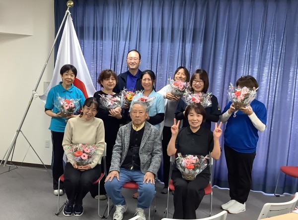 社会医療法人 蒼生会の勤続年数10年以上の勤務者にお祝い金(10万円~勤務年数により増額)とお祝いの花束の贈呈がありました。蒼の里開設から10年、開設当初から蒼の里に尽力してくださった10年勤務者と蒼生病院から移動となり蒼の里のメンバーとして共に盛り上げてくださった職員です。これからも老健蒼の里で体が許す限り務めていただけるように願ってます。